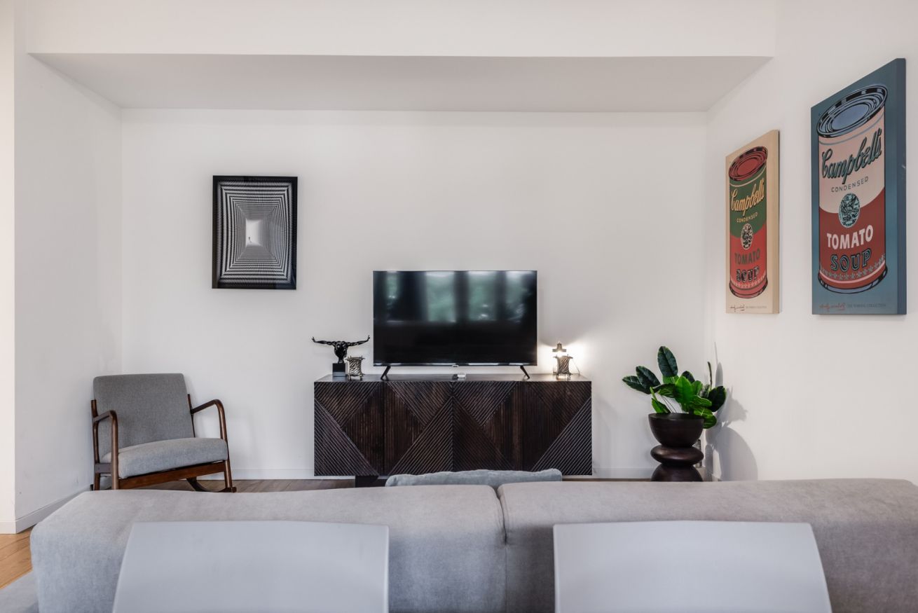 Due televisori di ultima generazione Full HD sono disposti in entrambe le stanze.
