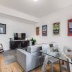 è fornita di un comodo divano a 2 posti che diventerà letto e un ampio tavolo quadrato in vetro con quattro sedute in cui godersi i pasti.